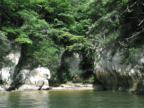【嵯峨渓SUPツアーの流れ⑤】 数回洞窟をくぐり、折り返し地点で 引き帰します。 往復4km前後あり、経験者でも漕ぎ応えのあるツアーです。 |