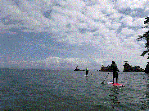 | 催行対象者 | ■人数/1~6名様まで ■このツアーは外洋に面しているため、外海でのSUP経験者のみが対象となります。 ■基本、個々の車でお越しの方を対象としています。 ■13才以上であれば、年齢性別は問いません (注7) 注7.18才未満のお客様は保護者同伴でお願い致します。 |