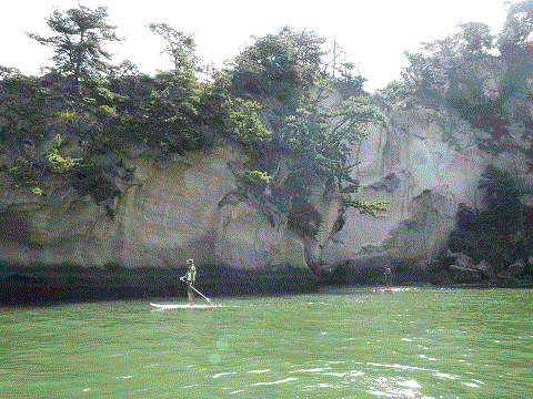 | 嵯峨渓・宮城・奥松島・石巻にてSUP(スタンドアップパドル・パドルサーフィン)クルーズやSUPツアーを行っています。嵯峨渓の洞窟巡りをするツアーを行っています。 |