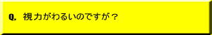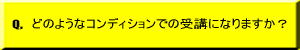 A, 視力の悪い受講者は意外と多いのが現状です。大半はソフトな使い捨てのコンタクトレンズを個々に使用しています。但し、コンタクトレンズが合わない方は事前にお申し出ください。 |