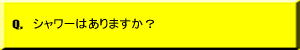 A, シャワーはございません。予めペットボトルやポリタンクをシャワー代わりのご用意いただきます。別途料金となりますが、こちらで用意することも可能です。 |
